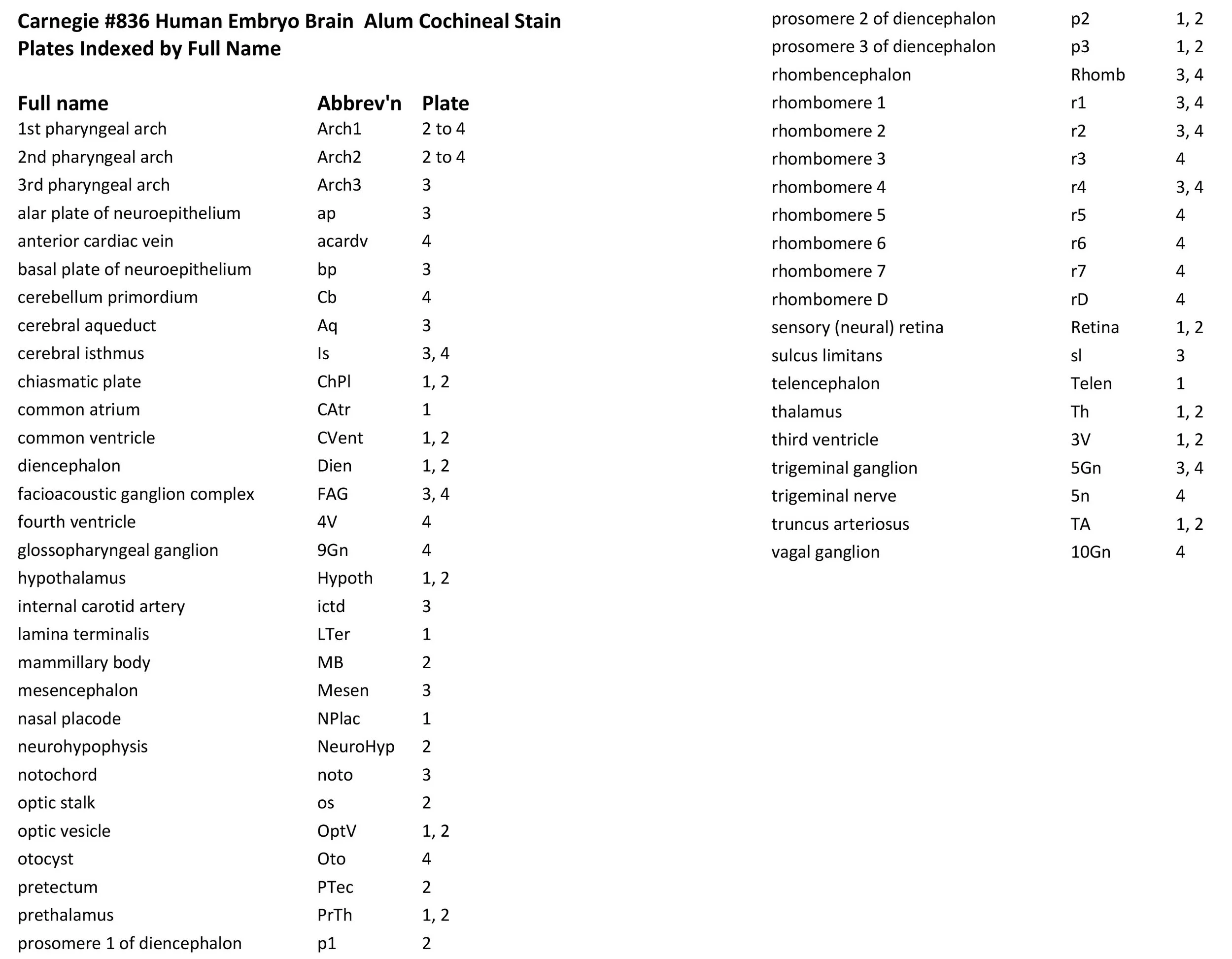 Atlas of the Brain of a 4 week Human Embryo, Carnegie #836