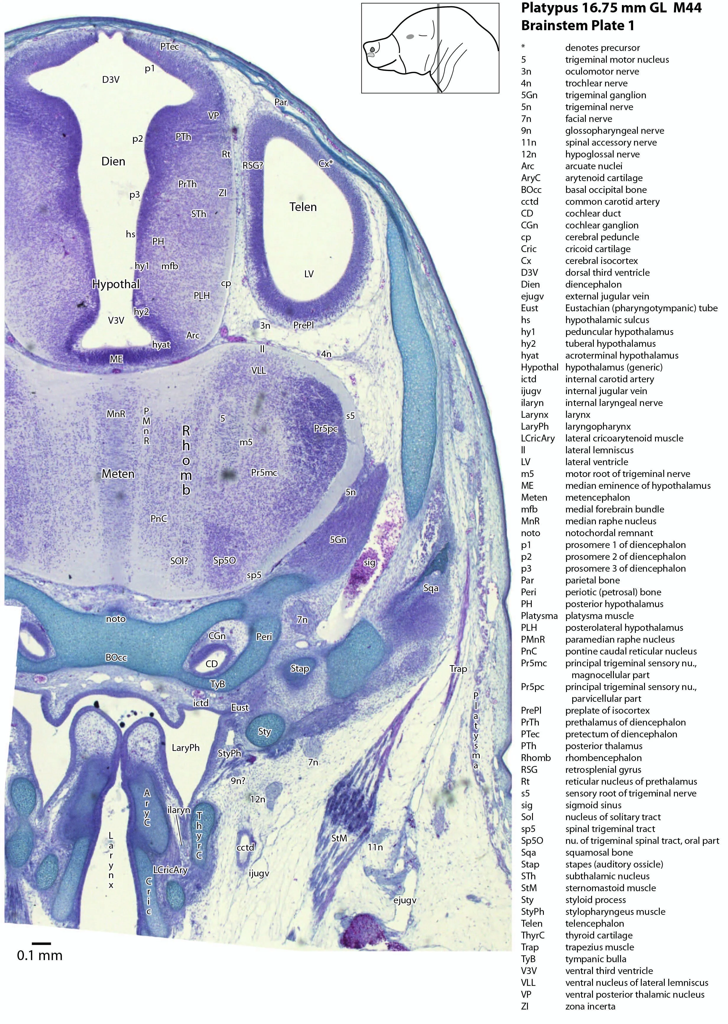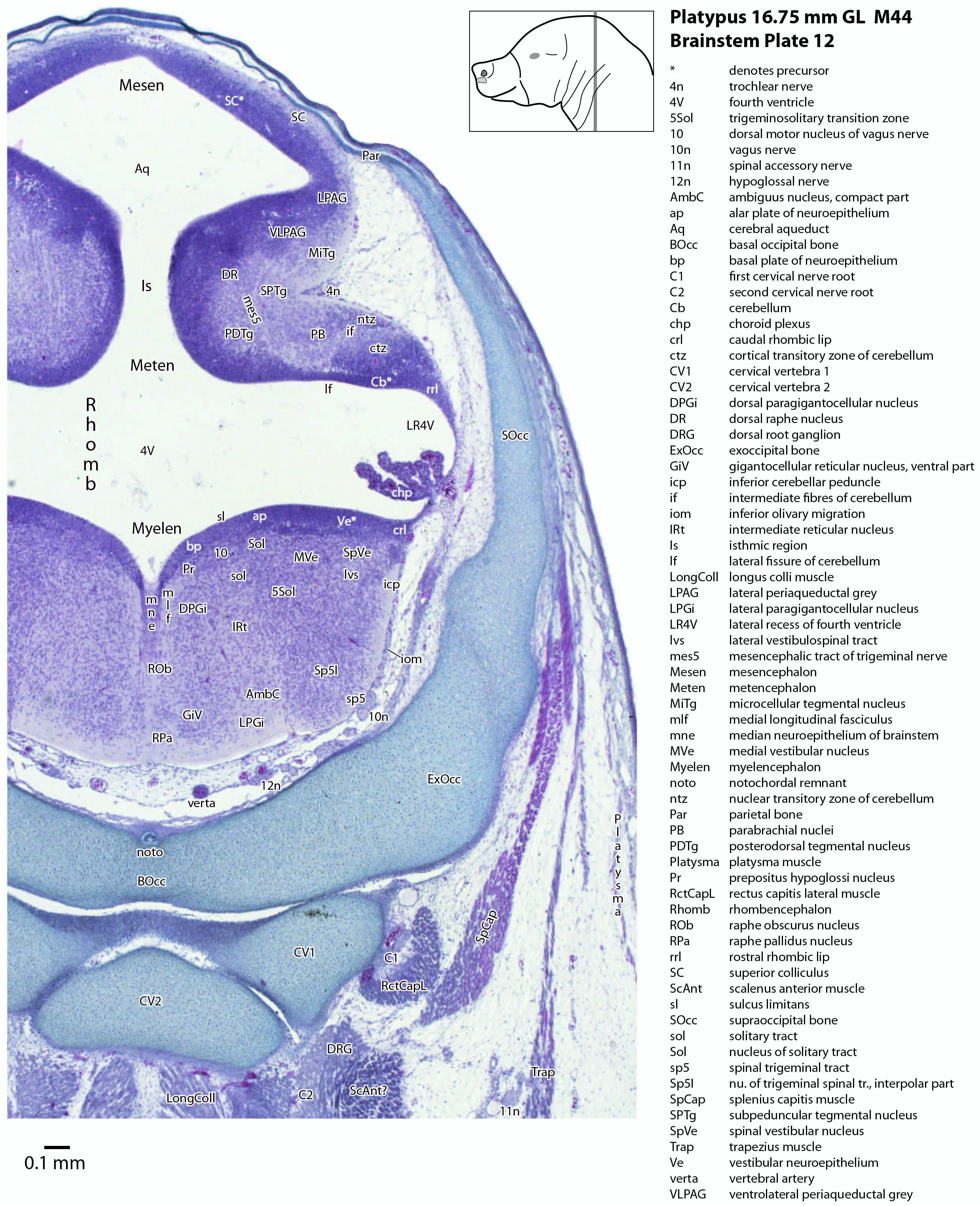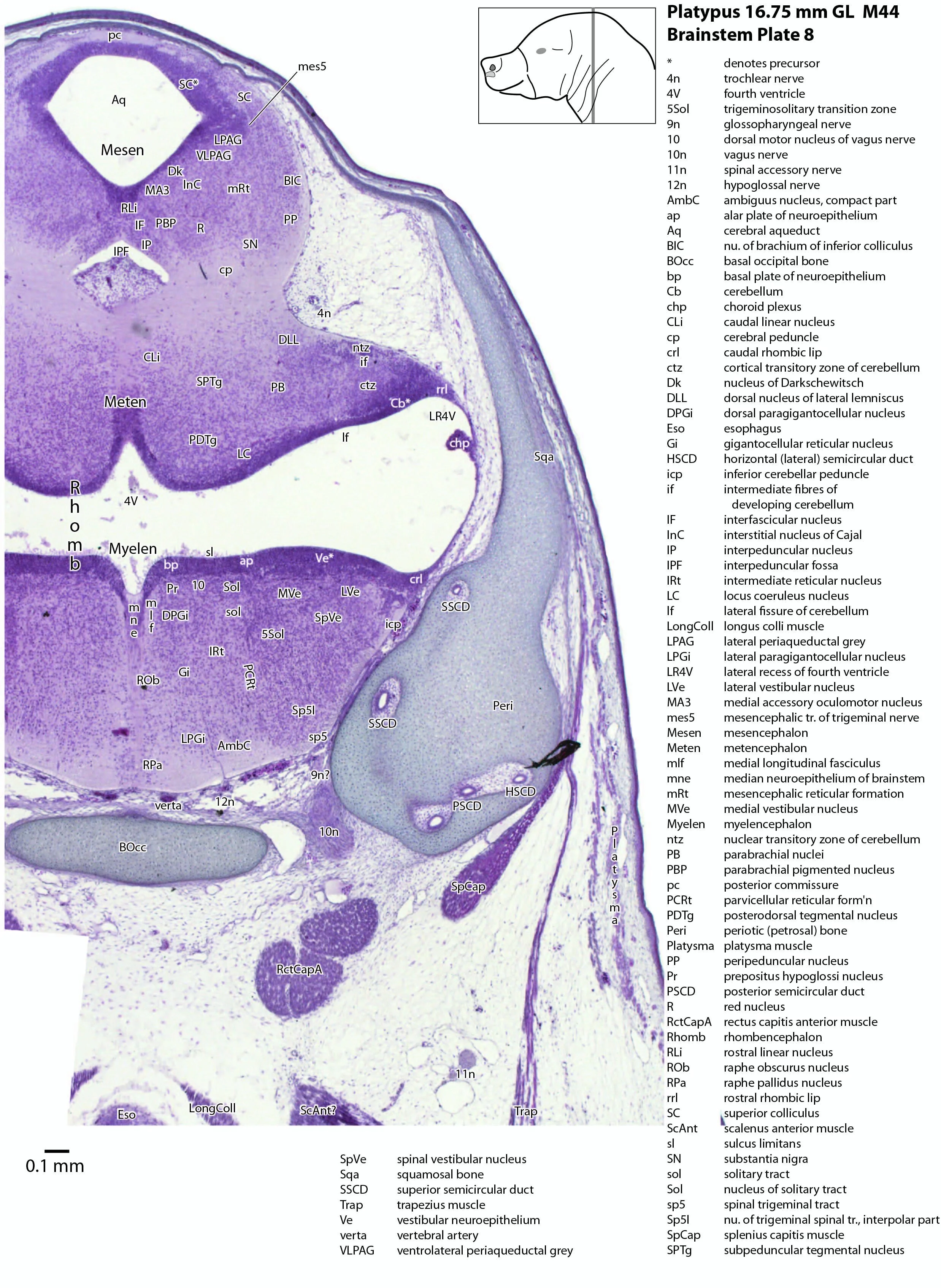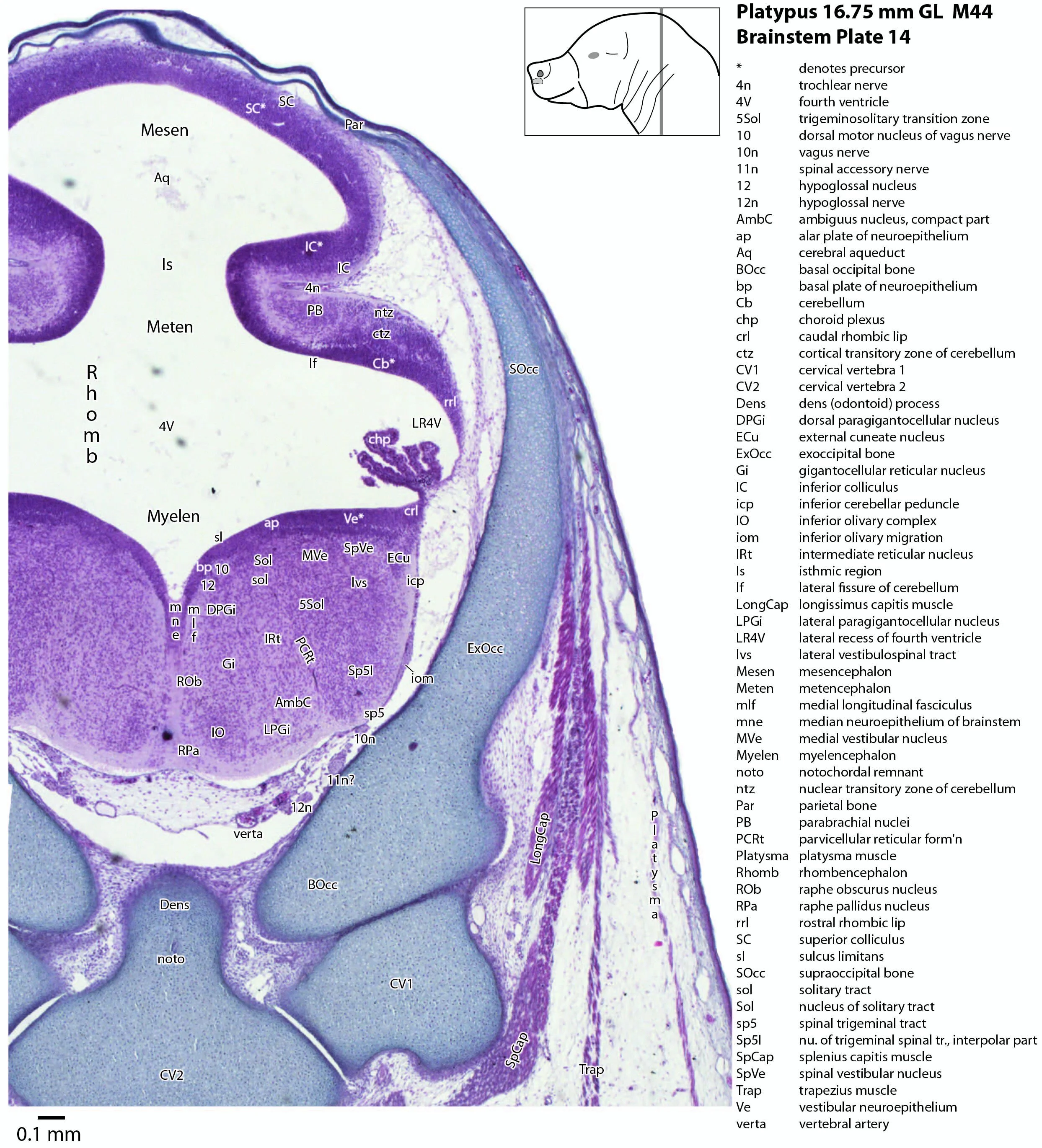 Atlas of the Brainstem and Posterior Head of a Newly Hatched (16.75 mm GL) Platypus (M44)