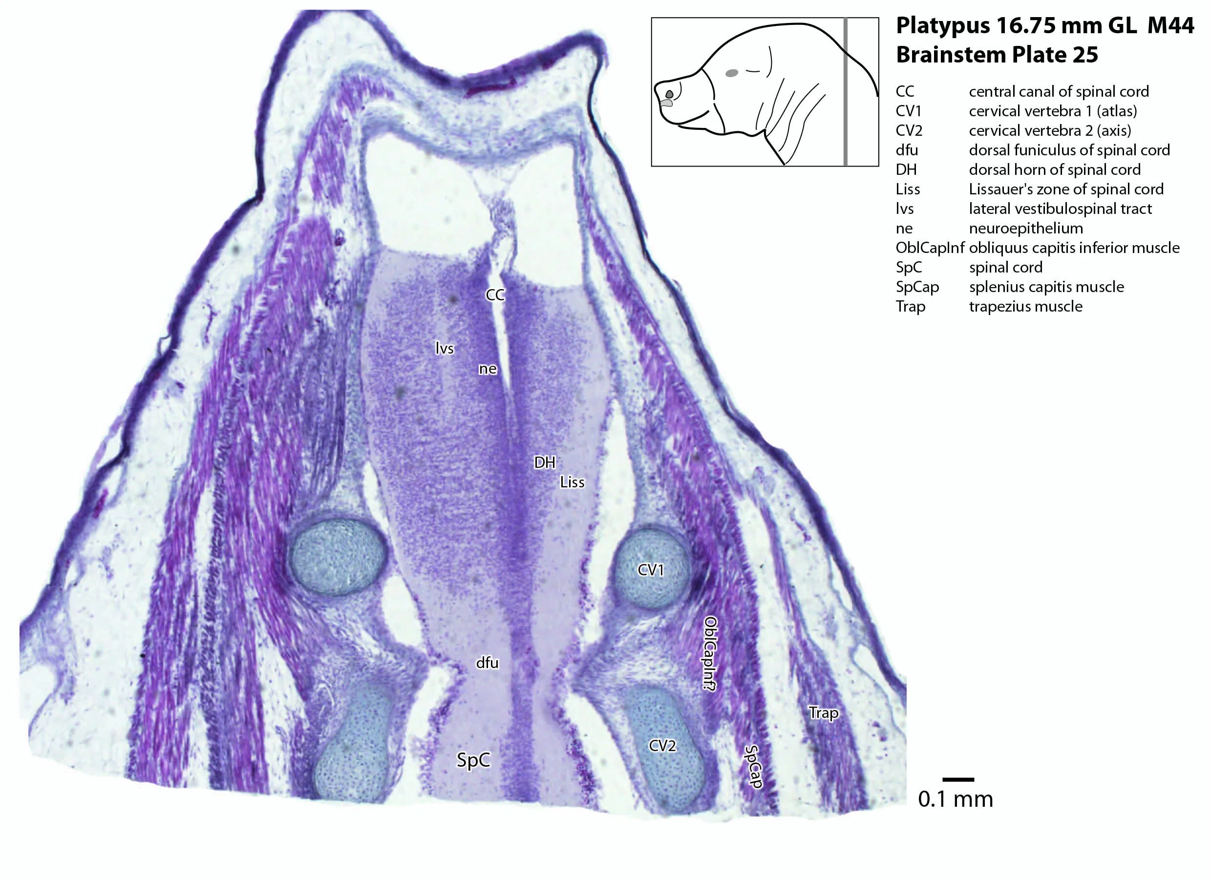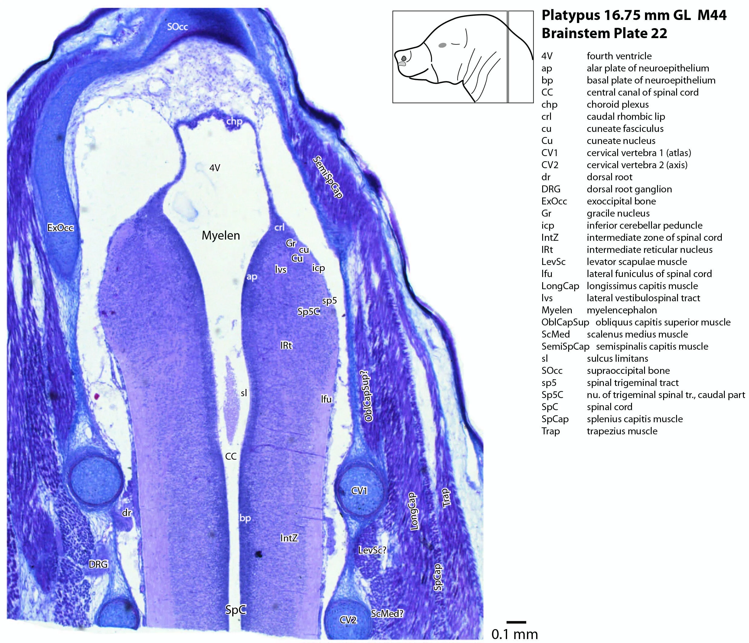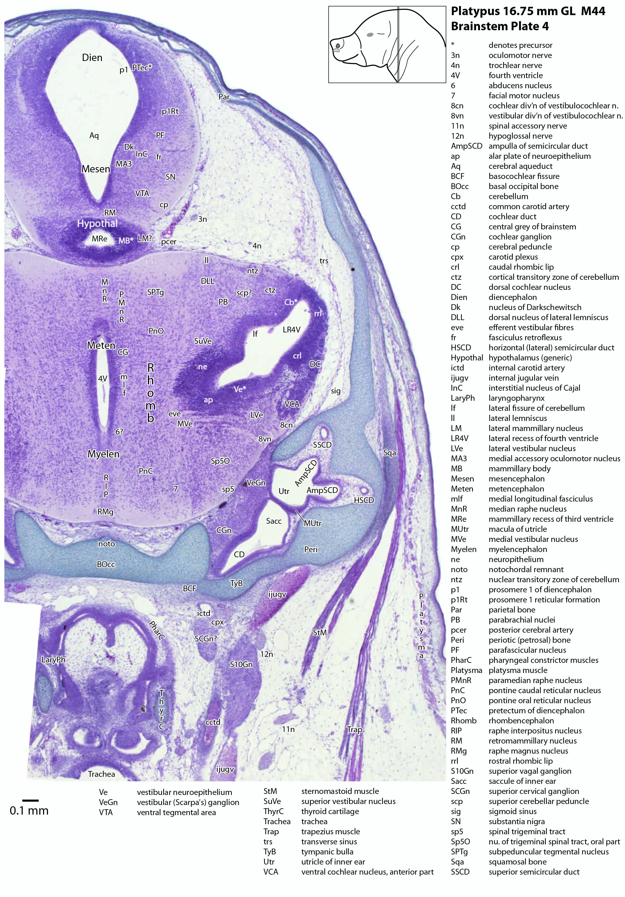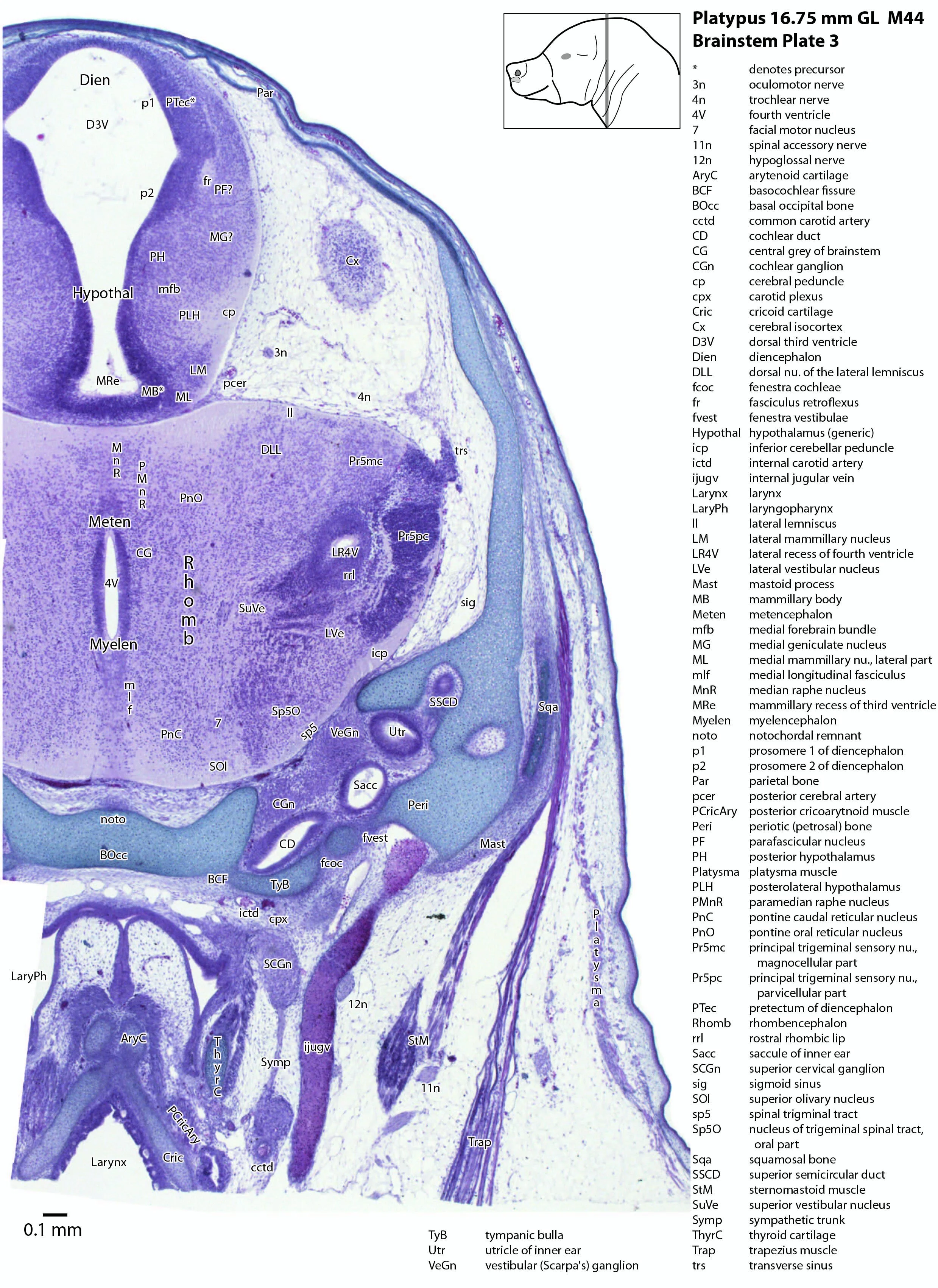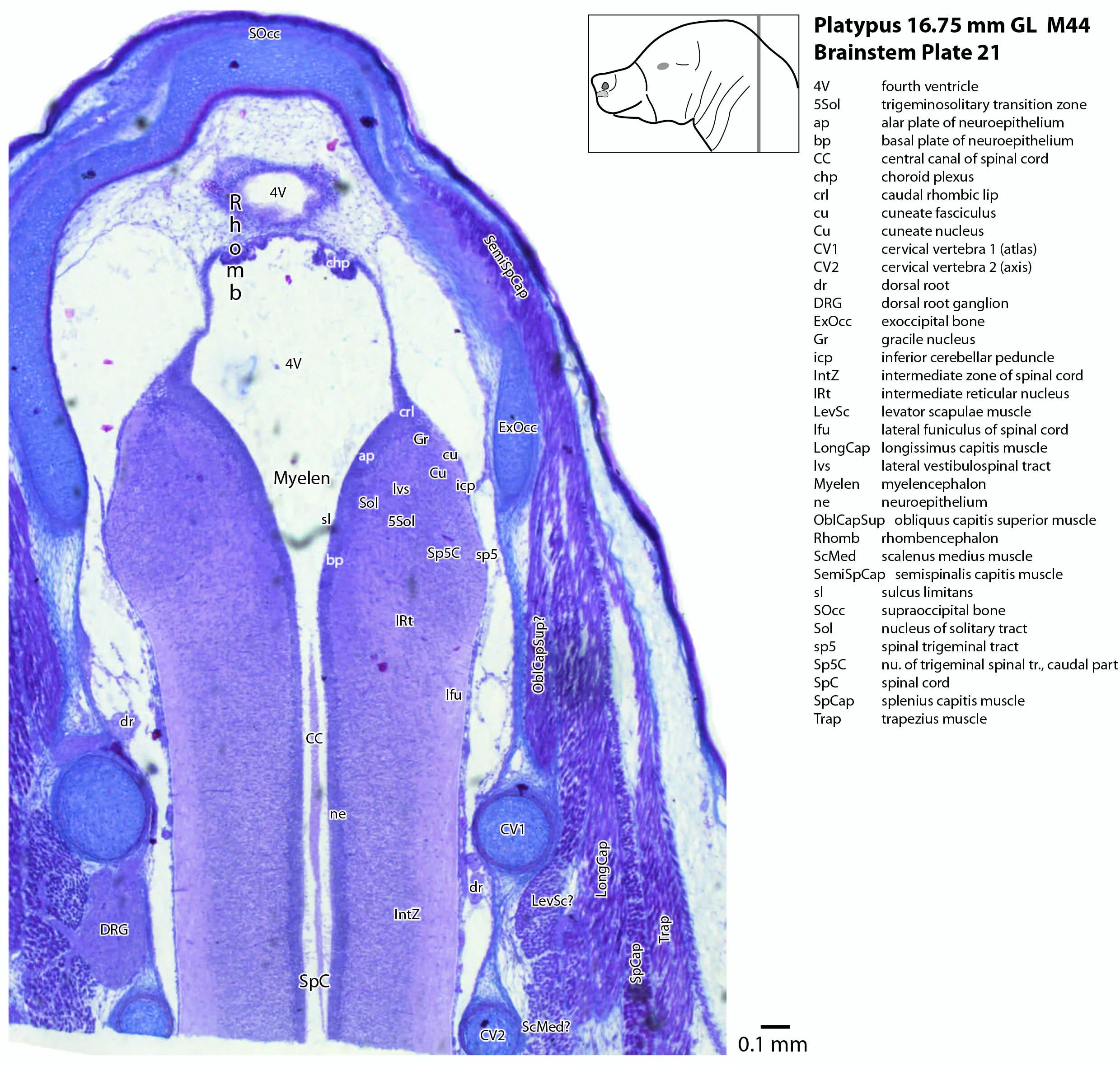 Atlas of the Brainstem and Posterior Head of a Newly Hatched (16.75 mm GL) Platypus (M44)